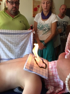 Liečenie ohňom a vzduchom - toto bol naozaj skvelý seminár s Eckardom Strohmom: používali sme oheň a vzduch za účelom liečenia. Nevedela som, čo mám očakávať, ale bolo to skutočne vzrušujúce pre mňa. Na tomto seminári sme sa naučili mnoho o samých sebe. Hľadali sme možné dôvody, ktoré nás blokujú a nedovolia nám byť samymi sebou – byť slobodnými. V meditáciách nám boli kladené podrobné otázky, aby sme si ich sami zodpovedali na to, aby sme si pomohli rozvíjať svoju osobnosť. Pre mňa to bol veľmi hlboký pohľad odrážajúci moju vlastnú osobnosť, postoje a správanie súvisiace s mojim životom a osobným rozvojom. Tiež sme dostali spirituálne zasvätenie na podporu liečebných aktivít s elementom ohňa. Učili sme sa o dávnych šamanských a ázijských vedomostiach o 5 elementoch, ich vzťahu k telovým orgánom a o ich vzájomných súvislostiach. Tiež sme sa učili o systéme energetických dráh (meridiánoch) a rôznych bodoch prislúchajúcich k meridiánom a jednotlivým orgánom a špecifickým zónam nášho tela, ktoré môžeme používť na liečenie. A naozaj sme veľa precvičovali – a bolo to horúce. Veľmi horúce. A bolo to veľmi, veľmi dobré. Je také jednoduché liečiť ohňom a vzduchom, ale tak účinné. Veľmi sa teším, že som sa rozhodla zúčastniť sa tohto seminára a rada by som ho odporučila každému, kto sa o to zaujíma.